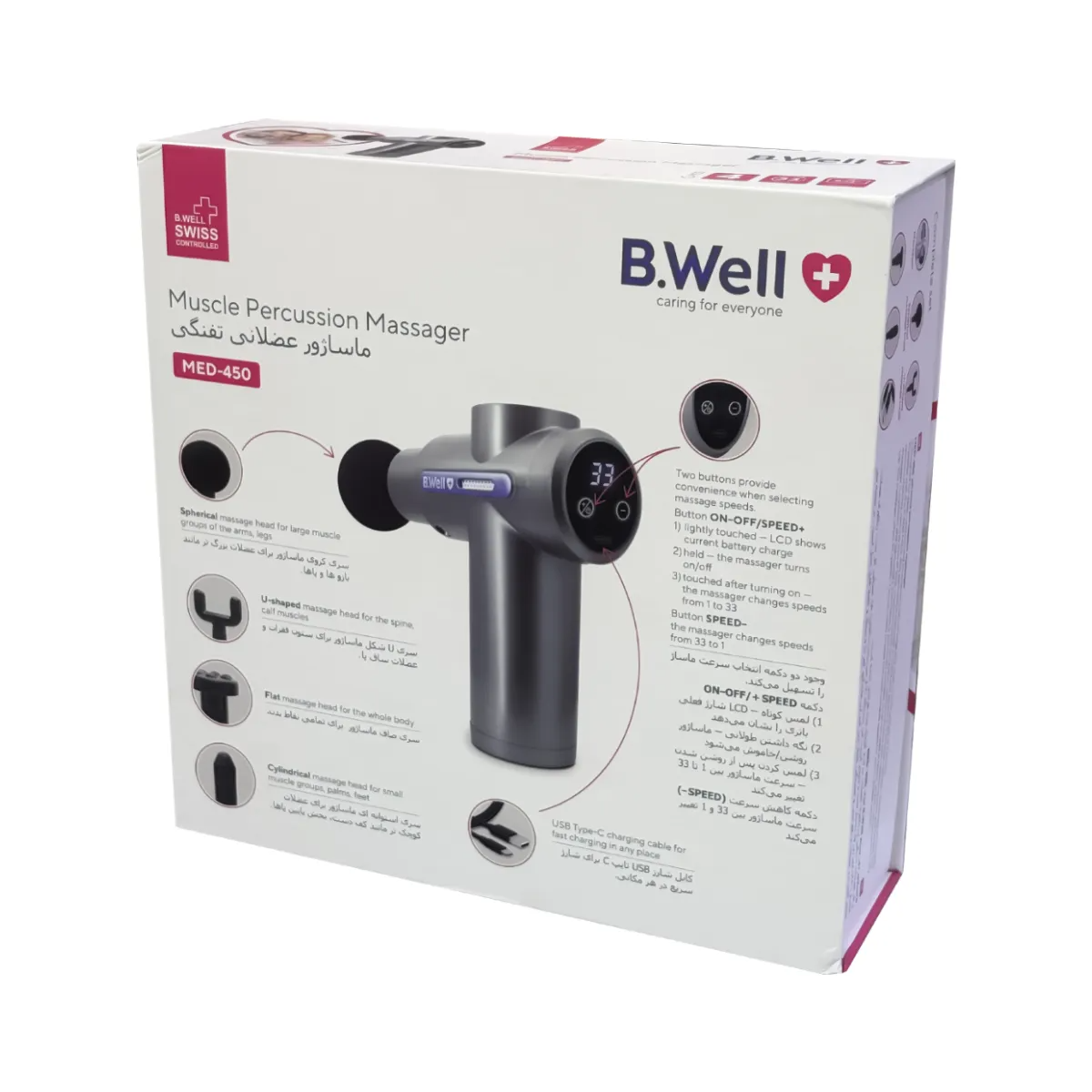 B.Well MED-450 یک ماساژور ضربهای حرفهای است که استانداردهای ایمنی سوئیس، شدت قابل تنظیم و لوازم جانبی متنوع را برای تسکین هدفمند ترکیب میکند. قابلیت حمل و نقل و قابلیتهای بافت عمیق آن، آن را برای ورزشکاران، مبتلایان به درد مزمن یا کاربران روزمره که به دنبال بازیابی عضلات هستند، ایدهآل میکند.
